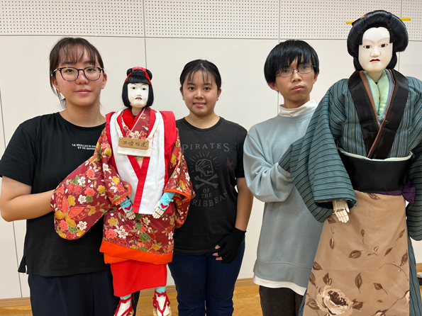 人形浄瑠璃は3人で1体の人形を動かします。未経験者も大歓迎です。是非見学にお越しください。