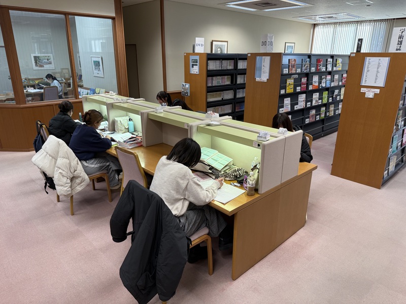 今週は期末試験週間となっています。本学は、学科の教室等含めたくさん勉強するスペースが確保されています。