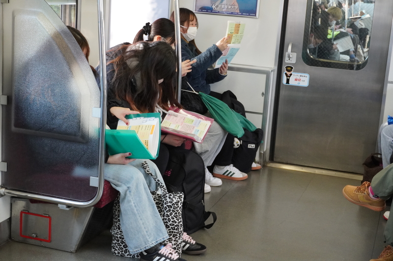 そして、国家試験は高松駅から会場の宇多津まで、電車で向かいました。電車の中でも、必死に勉強しています。