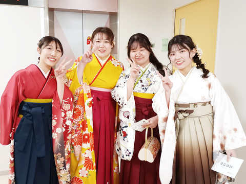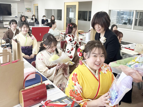 着飾った卒業生の皆さんは、メディアセンター7階にある学科の実習室に集まって…