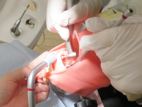 マネキン模型についた、人工歯垢を取り除く実習を学んでもらいました