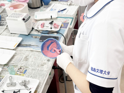 精密印象採得の実習は3年生前期の授業、歯科診療補助論基礎実習Ⅱの一部として行っています。
