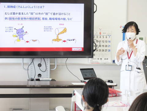 吉岡教授による「酸蝕症」をテーマとした模擬授業では…