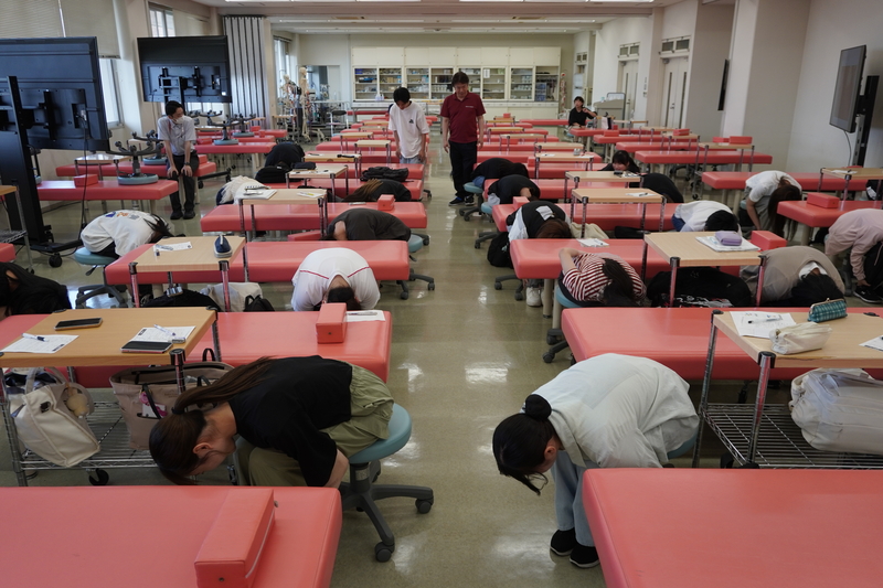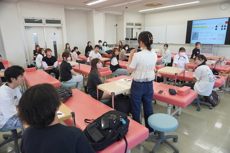 理学療法学科の学生も心理学科や看護学科など多くの体験をして回ります。