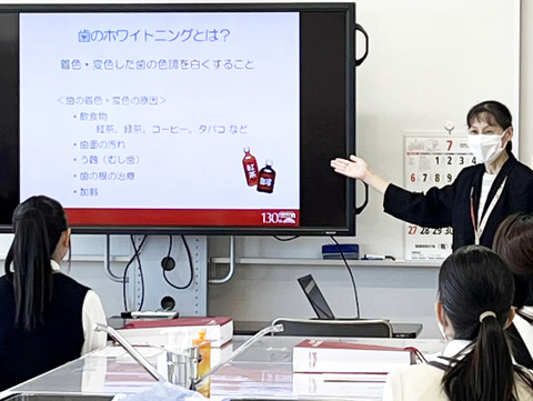 今回の模擬授業は「歯のホワイトニング基礎講座」がテーマでした