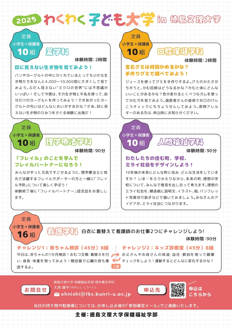 夏休みの自由研究などに活用してもらうべく、保健福祉学部と薬学部が共同してわくわく子ども大学を開催することになりました!!