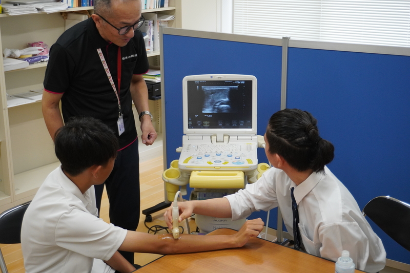 中宿先生の研究室では、超音波を用いた筋肉の見方を体験していました。