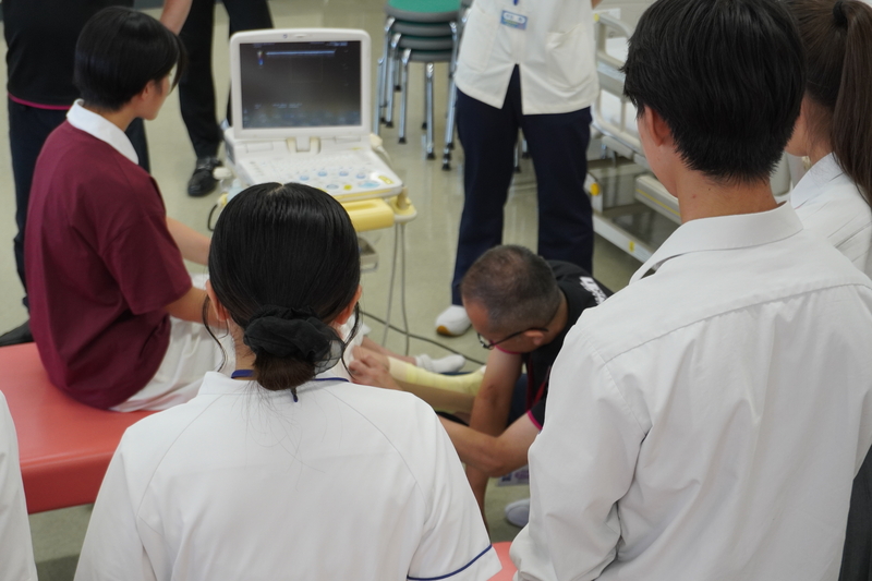 すべてのイベントが終了したあとでも、膝に不安のある参加者を中宿先生が超音波で確認し、アドバイスを行っており、
