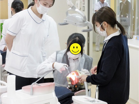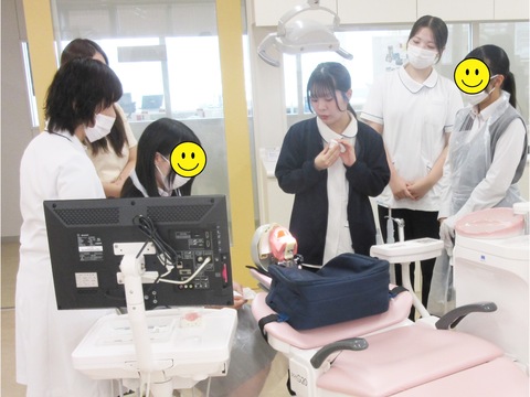 診療ユニットの装備やマネキン模型などを利用した、模擬実習を体験してもらいました