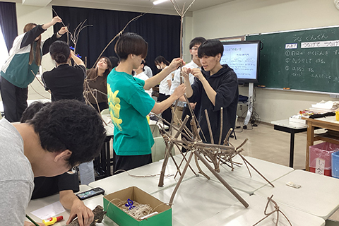小学校で子どもたちの心に届くような図画工作の知識や教え方を学びます。グループで教科書から題材を選び、導入や展開方法を研究し、現場をイメージしながら教師役になって、模擬授業で実践力を身につけます。