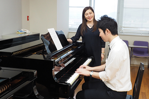 8人の教員が一人ひとりの段階に合わせてピアノの演奏や弾き歌いをレッスンします。未経験者も4年間で必ず技術が身につきます。