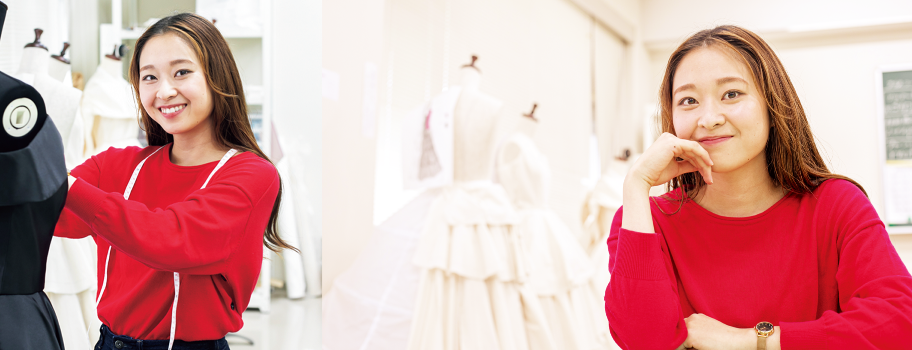 ブライダル・ファッション、デザイン・アートワーク、パティシエと3分野の内容を学べるため、