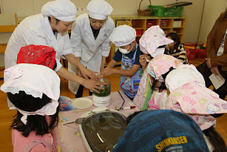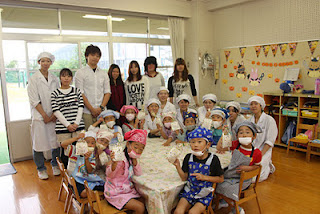 公開日 2011年10月13日 短期大学部生活科学科食物専攻で、紙芝居とやさいのパンケーキを幼稚園児と一緒に作りました。 ◆紙芝居を披露 ◆園児達と一緒にパンケーキ作り ◆最後に幼稚園児と集合写真 ◆最後にさよならの握手