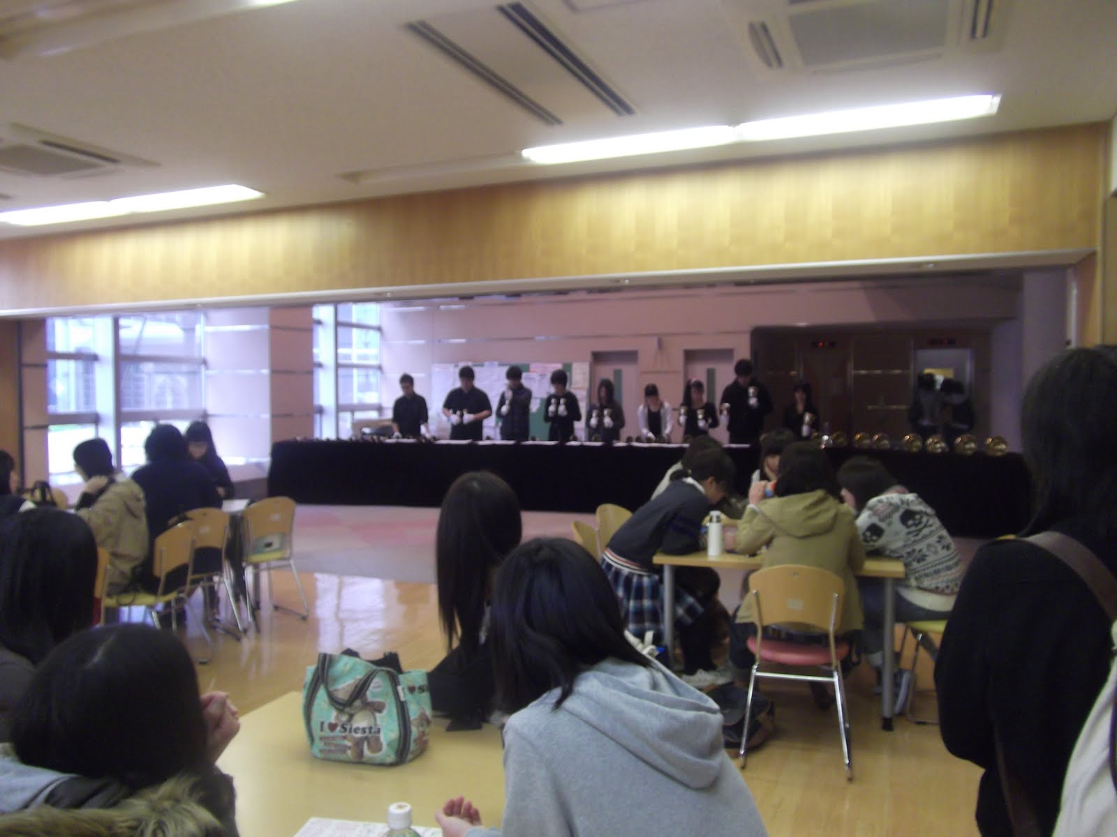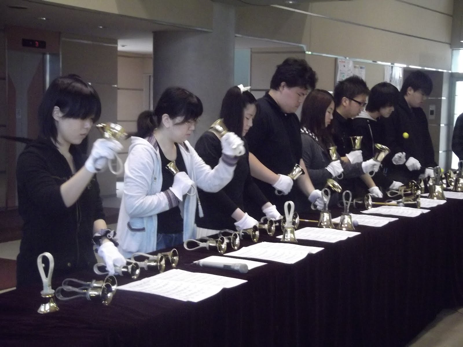 公開日 2012年04月16日 2012年4月16日(月)のお昼休みに9号館のロビーでミニコンサートを開きました。 Bunriハンドベルクワイアは県内では珍しいイングリッシュハンドベルサークルです。短期大学部、人間生活学部、総合政策学部などさまざまな学部の学生が集まり週に2回、ハンドベルを楽しんでいます。興味のあり方はぜひのぞいてみてください。毎週火曜と金曜の5時から、8号館2階の8232教室で練習しています。