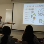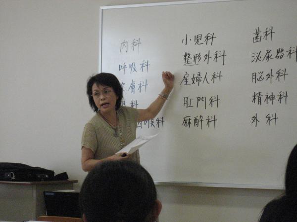模擬授業では、生駒恵子先生が「医療事務総論」の講義を1時間行い、病院など医療機関が表示できる診療科目が38科目であることや、医療費計算の仕組みなどを分かり易く説明してくれました。
