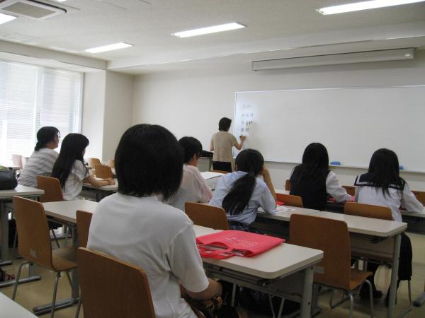 11時から短期大学部全体の説明を行い、昼食後、学科毎に分かれて説明と模擬授業を行いました。