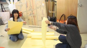 公開日 2012年11月09日 今、保育科では、11月21日・22日に開催する「第29回おとぎのくに」のために、毎日遅くまで練習や製作に取り組んでいます。 ミュージカルや歌・ダンスの練習と並行して、おみやげ作り(700個!)、衣装や道具の製作もしなくてはいけないので大変です。 でも、子どもたちの笑顔を楽しみにしてがんばっています。時間があれば、ぜひ見に来てください。