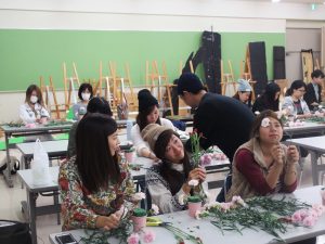 ブライダルファッションコース 後期2年生 ブライダルフラワー授業です。