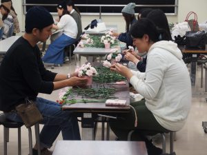 丁寧な先生の指導のもと綺麗なカーネーションのアーチをつくります。