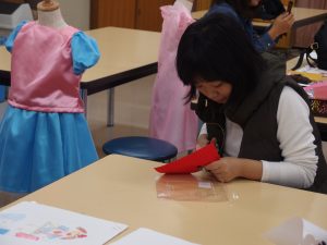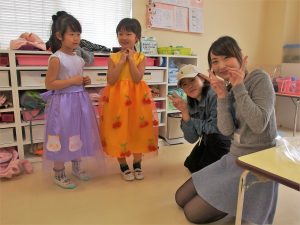 後期1年生 ファッションクリエーション授業 園児デザインで服作りです。