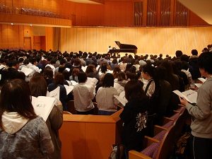 4日は朝から大学歌の練習です。むらさきホールで歌うのでよく響きました。