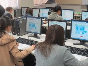 午後は履修指導のあと、実際にパソコンを使って履修登録を行いました。大学の授業は、自分で受ける科目を選んで登録することから始まります。