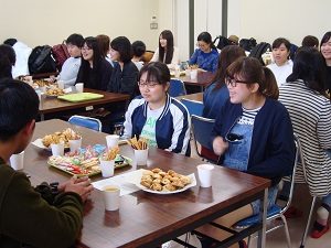 1年生が4講時の文理学「簡単お菓子作り」でロッククッキーを作りました。一緒にいただきながら、おしゃべりをしました。