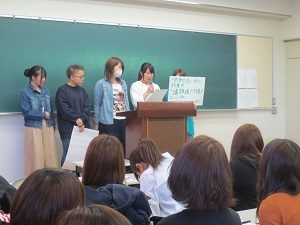 食物専攻では、1班、2班、3班の3グループが発表しました。