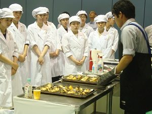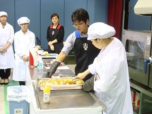 食物専攻2年は、給食運営管理実習の一環として、電化厨房体験セミナーを受講しました。