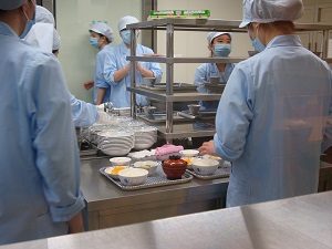 給食提供前の最後の準備をしています。
