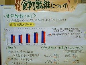 お客様が入って来られました。栄養指導の媒体「食物繊維について」を熱心に見てくださっています。