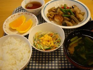 レンコンやゴボウなど、根菜類がたっぷりでしっかり噛みごたえのある献立でした。