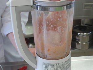 食材を飲み込みやすいようにする工夫をいろいろ学び、たいへん勉強になったようです。