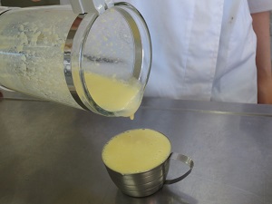 今回は各班で事前に考えた天然濃厚流動食で、作りやすいように200gで調製しました。