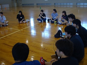 まずは、チーム内での自己紹介。これから一緒にドッジボールをする仲間です。