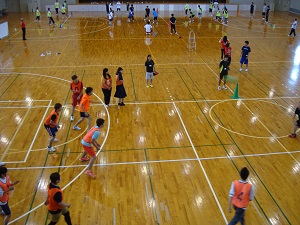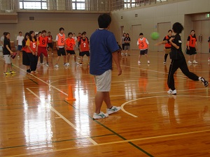 今日は、ドッジボール地域別新入生対抗マッチです。他学部他学科の1年生との親交を深めることを目的に実施されました。食物専攻の1年生も参加しました。