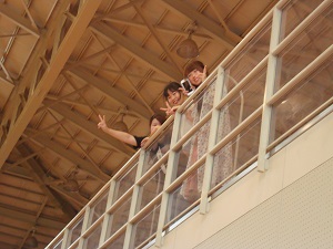観覧席からも食物専攻の1年生が声援を送っています。最後まで頑張れ!