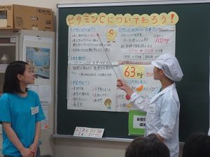また、学生の作成したポスター「ビタミンCについて知ろう!」を用いて、栄養指導も行いました。