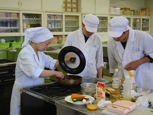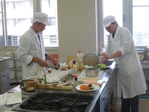 実技審査にむけて、授業終了後の空き時間を利用して、調理室で練習をしています。