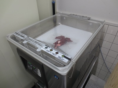 骨から外した肉は部位ごとに切り分け、真空パックします。