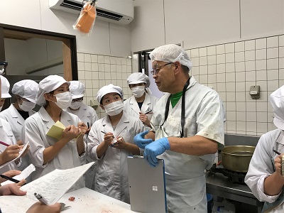 手際よく包丁を扱いながらのアドバイスに、学生も必死でメモを取り、写真に収めます。