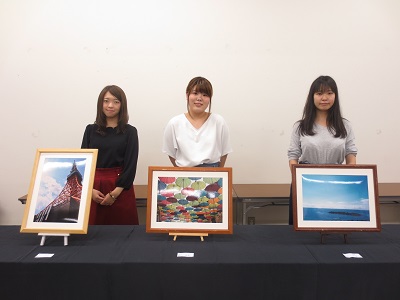 「写真部」は、自分の作品の後ろに勢ぞろいしました。