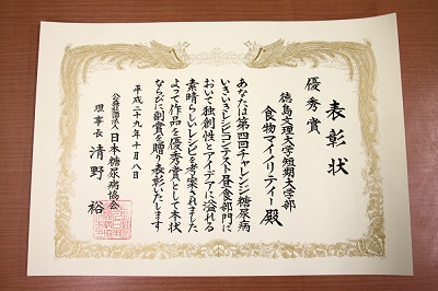 第4回チャレンジ!糖尿病いきいきレシピコンテスト(日本糖尿病協会主催)において、食物専攻2年の小川竜平さんと恵美須孝平さんのチーム(食物マイノリティー)が優秀賞を受賞しました。