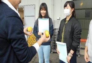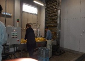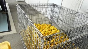勝浦や木頭などから送られてくる「柚子」「ゆこう」「すだち」などを100%果汁にする工程を見学しました。