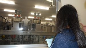 HACCPに基づいた果汁搾汁施設を、ガラス窓から見学しました。世界に進出しているすばらしい施設だそうです。
