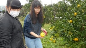 調理実習に使う「柚子」を収穫し、柚子味噌をつくります。