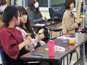 ブライダルファッションコース2年生 ブライダルフラワーの授業風景です。