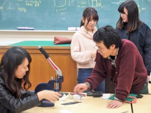 本日は講師に鈴木カバン制作室の鈴木僚先生をお招きして可愛いコインケースを作りました。