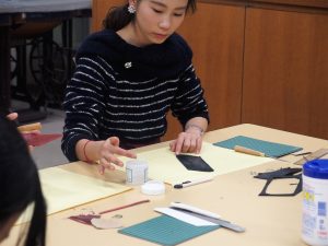 ブライダルファッションコース2年生 後期ファッショングッズ授業では鹿や牛の革を使ってオリジナル作品を作ります。