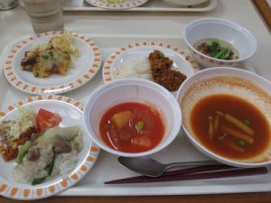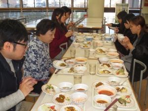 学生全員から提出されたメニューより候補として7品が選ばれ、事前にお渡ししていたレシピに従って学生食堂の方に作って頂きました。